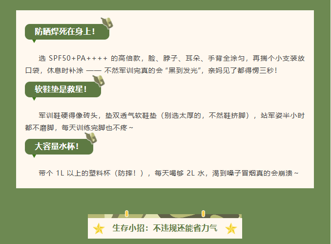 请查收!属于你的军训小Tips~