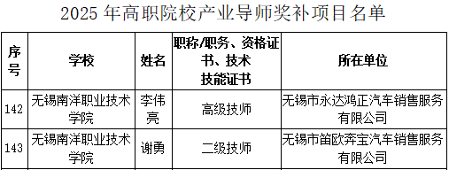 近日,江苏省高等职业教育教师培训中心公布了2025年高职院校产业导师评审结果,智行汽车学院兼课教师谢勇、李伟亮凭借其丰富的行业经验、扎实的专业能力与突出的产教融合实践成果,成功获评“2025年江苏省高职院校产业导师”。