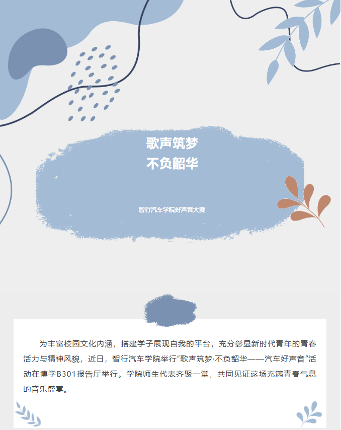 歌声筑梦·不负韶华 | 智行汽车学院“汽车好声音”